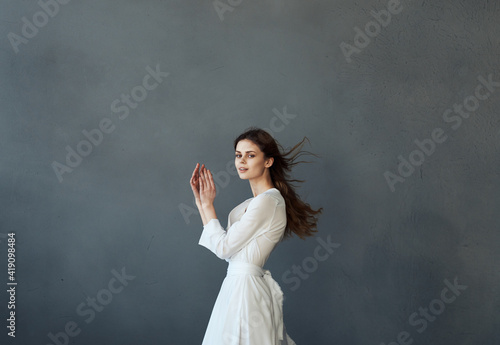 Fototapeta premium beautiful woman from white dress dance glamor performed elegant style