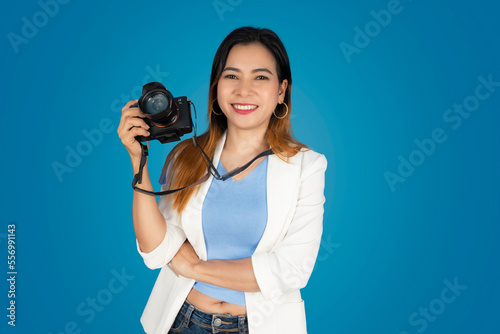 © Loeun, Fototapeta premium Beautiful woman holding a camera and taking pictures