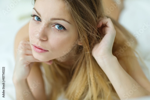 © nuzza11, Fototapeta premium beautiful woman in a morning bed