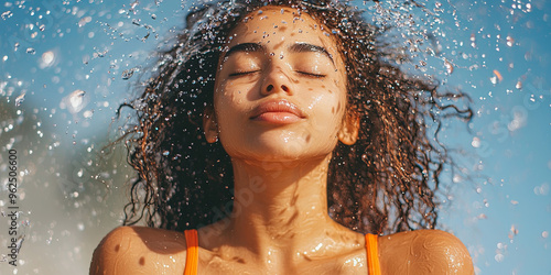© VALUEINVESTOR, Obraz premium Beautiful woman in a tank top, getting water flowing, generative AI