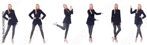 Fototapeta premium Beautiful woman in black coat isolated on white