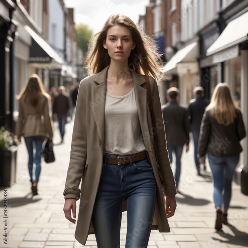 Fototapeta premium Beautiful Woman in City Center – AI generated