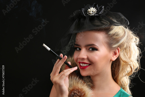 Obraz premium Beautiful woman in retro style, on dark background