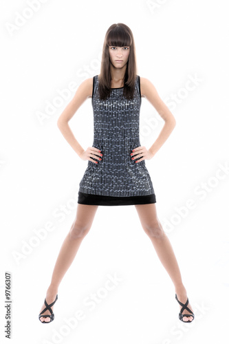 © Evgeny Gultyaev, Fototapeta premium Beautiful woman in short dress poses over white