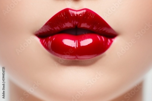 Obraz premium Beautiful woman lips with sexy red lipstick, generative ai