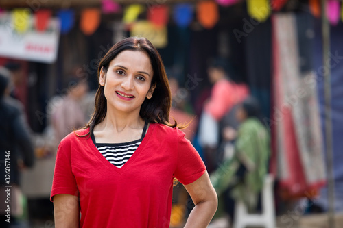 © creativeimages, Fototapeta premium Beautiful woman looking at camera at street market