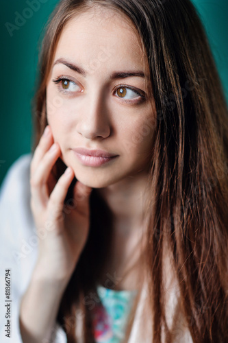 © timonko, Fototapeta premium Beautiful woman looking through a window