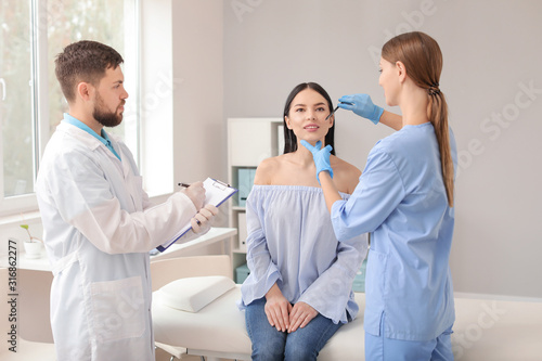 Fototapeta premium Beautiful woman meeting with plastic surgeon in clinic