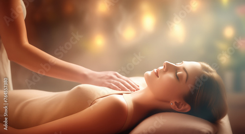 © jozefklopacka, Obraz premium Beautiful woman on the massage table.