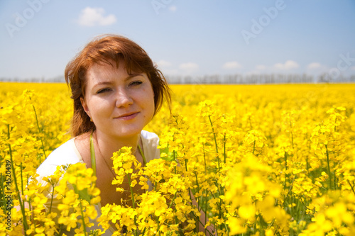 © Sergey, Fototapeta premium beautiful woman on the rape field