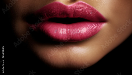 Obraz premium Beautiful woman pink lips shine with sensuality and elegance generated by AI
