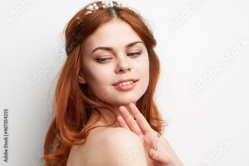 Fototapeta premium beautiful woman red hair decoration cosmetics close-up