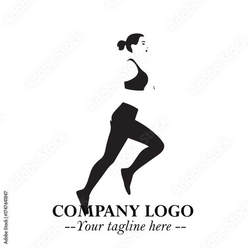 Naklejka premium Beautiful Woman Running Illustration in Black on White Background in Dynamic Minimalist Vector Design