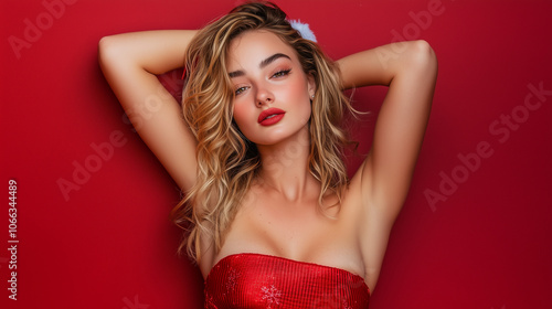 © daaakomo, Fototapeta premium beautiful woman Santa