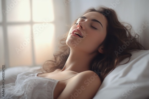 © id512, Obraz premium beautiful woman sleeping and snoring in bed at home