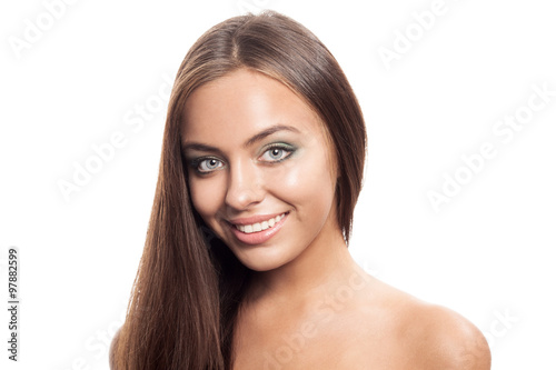 Fototapeta premium Beautiful woman smile. Teeth whitening. Dental care.