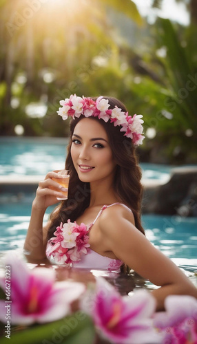 © Siriporn, Fototapeta premium Beautiful woman touching happiness in nature, spa style concept.