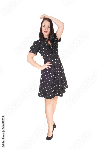 Fototapeta premium Beautiful woman walking in a pock dot dress