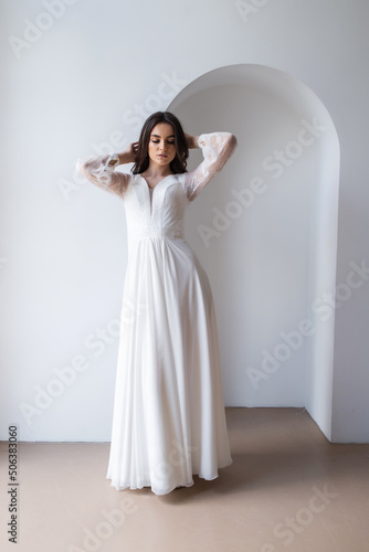 Fototapeta premium Beautiful woman wearing in luxurious long wedding dress. Concept of wedding...