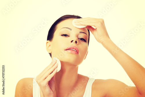 Fototapeta premium Beautiful woman with cotton pad