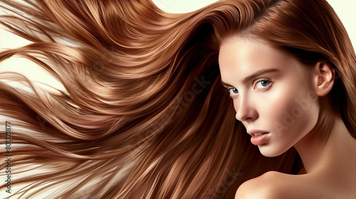© Emily World, Obraz premium Beautiful woman with healthy and sleek long hair for hair beauty products commercial.
