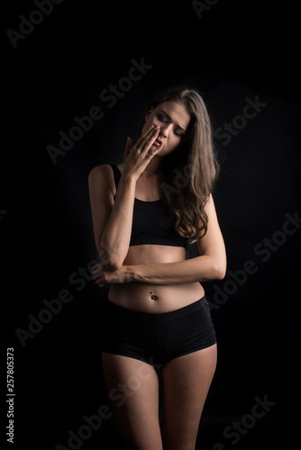 © Johnstocker, Obraz premium Beautiful woman with healthy body on black background
