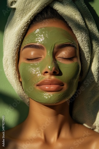 Fototapeta premium Beautiful Woman with Hydrating Green Serum Mask