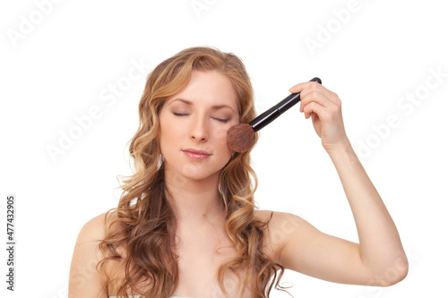 © zhagunov_a, Fototapeta premium Beautiful woman with makeup brushes