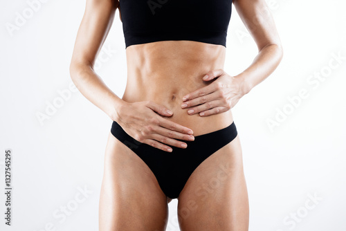 © nenetus, Fototapeta premium Beautiful woman with sporty body posing over white background.