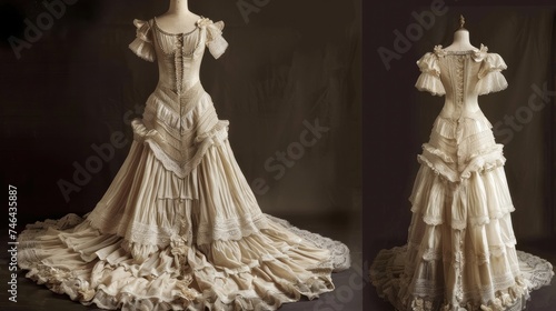 © Dvid, Naklejka premium Beautiful women's wedding bridal dress, white, with veil, which will look good on you Generative AI