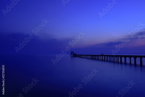 © 25221501, Fototapeta premium Beautiful Wood bridge Twilight Sunset at Sea