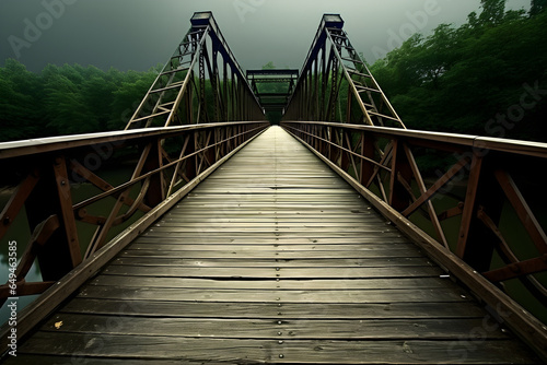 Obraz premium Beautiful wooden bridge over the river in the mountains nature view.