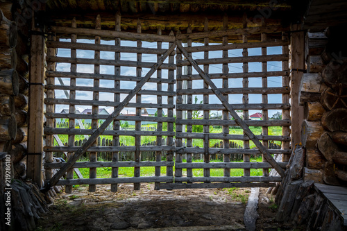 © Evgenii, Fototapeta premium Beautiful wooden gate to the old village