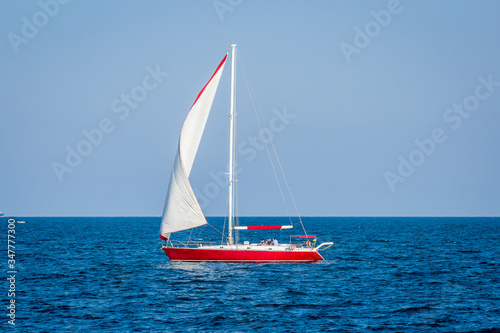 © Виталий Меняйлов, Naklejka premium beautiful yacht in the Black Sea near the shore of Odessa a large ship