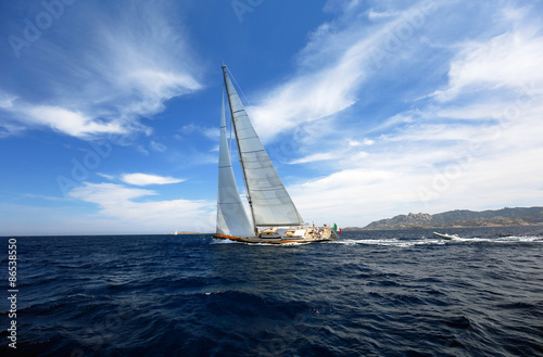 Fototapeta premium Beautiful yacht sailling at full spead in Sardinia, Italy