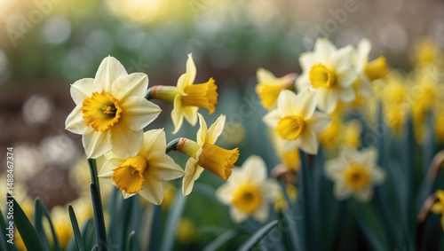 © GenZGraphics, Obraz premium Beautiful Yellow Daffodil Isolated, Showcasing Spring Flowers and Landscape