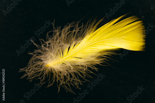 © Юлия Усикова, Obraz premium .Beautiful yellow feather on a black background
