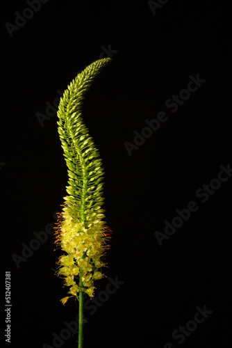 © Studio F., Fototapeta premium Beautiful yellow foxtail lilly (eremurus robustus) on black.