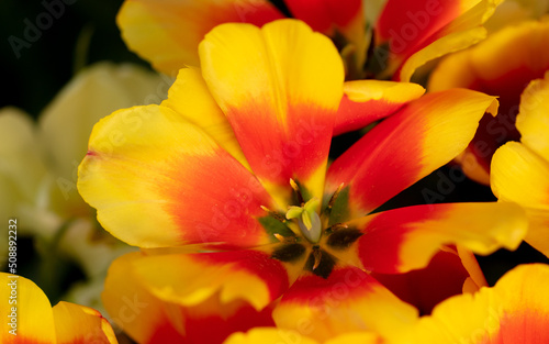 © schankz, Naklejka premium Beautiful yellow-red tulip flower in nature.