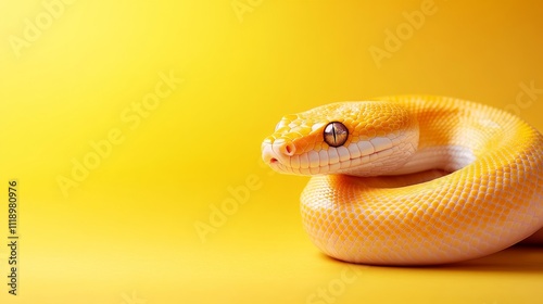 © GenerativeAIpicture, Fototapeta premium Beautiful Yellow Snake on Vibrant Yellow Background in a Studio Scene
