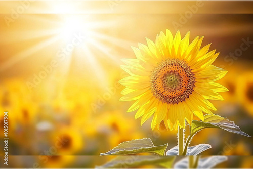 Fototapeta premium Beautiful Yellow Sunflower in Bloom with Blurred Field Background - Bright,...