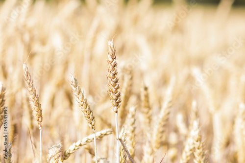 Fototapeta premium Beautiful yellow wheat grows in the field. Wheat season in summer