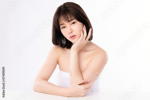 Fototapeta premium Beautiful Young asian Woman with Clean Fresh Skin, on white background, Face...
