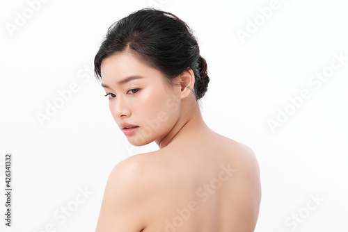 Obraz premium Beautiful young asian woman with clean fresh skin on white background, Face...