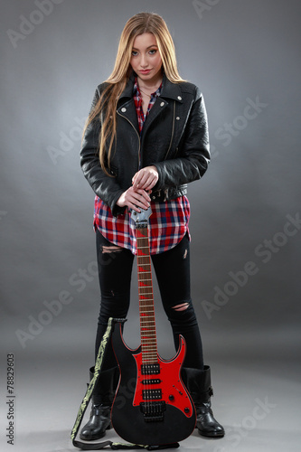 Naklejka premium Beautiful young,blond woman with a electric guitar
