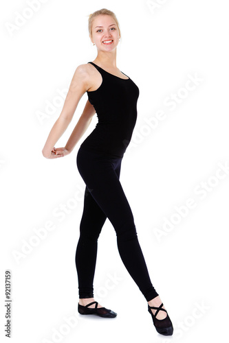 Fototapeta premium Beautiful young blonde woman gymnast training stretching exercise, isolated...