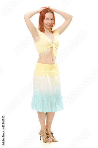 © Sergey Khamidulin, Fototapeta premium Beautiful young brunette belly dance woman