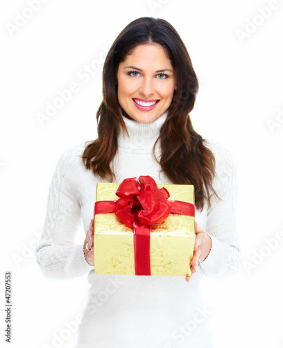 Fototapeta premium Beautiful young Christmas girl with gift.