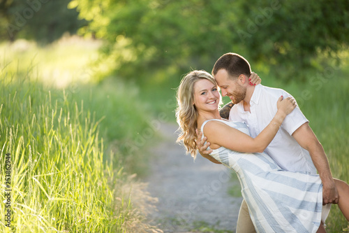 © Crystal Madsen, Fototapeta premium Beautiful young couple happily engaged