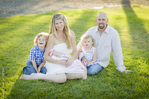 © Andy Dean, Fototapeta premium Beautiful Young Family Portrait Outside on Grass